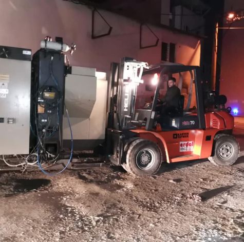 DEVAMINI OKU7 Ton kapasiteli forklift ile CNC Makinesi indirme